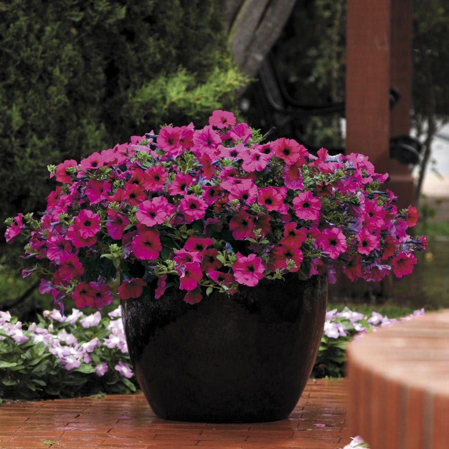 Wave Purple Improved petunia seeds are an upgraded and improved version of the Wave series. They feature a rich, pure purple-rose color, with deep, rich, and free of variegated colors. The flowers can grow up to 3 inches in diameter, with thick, resilient petals that resist fading, creating a striking bloom. Compared to older varieties, these seeds offer improved disease resistance and flowering performance: they are more resistant to common petunia leaf spot and root rot, and have a lower incidence of pests and diseases during care. They also have a longer flowering period, lasting from April to October, with dense blooms that nearly cover the entire plant. The plant is a climbing plant with sturdy vines reaching 30-34 inches in length. They can grow in a hanging or creeping pattern, making them suitable as groundcover or background border plants.